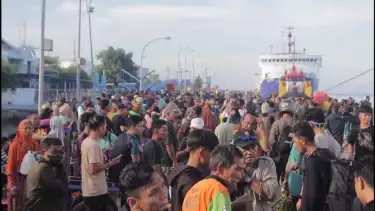 Parepare, tvOnenews.com - Arus mudik di pelabuhan Nusantara, Parepare, Sulawesi Selatan terus dipadati ribuan pemudik sejak siang hingga Sabtu petang (6/4/2024).