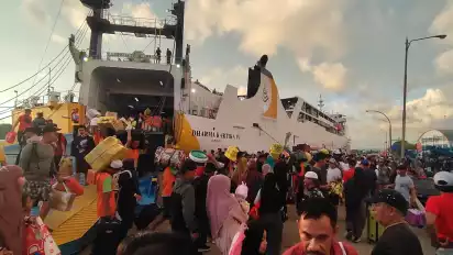 "Padat tadi di atas kapal tapi kami sih maklum karena kondisi saat ini sangat banyak penumpang yang hendak mudik dan lagian kami tetap mendapat tempat yang baik di atas kapal," ujar Anak, salah satu pemudik.