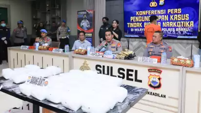 Makassar, tvOnenews.com - Satuan Reserse Narkoba Kepolisian Resor Barru bersama Direktorat Narkoba Kepolisian Daerah Sulawesi Selatan menangkap seorang pria inisial MNZ di Pelabuhan Awarenge, Kabupaten Barru. Dari MNZ ditemukan 30 paket narkoba jenis sabu seberat kurang lebih 30 kilogram dari Tarakan, Kalimantan Utara dengan tujuan Kabupaten Sidrap.