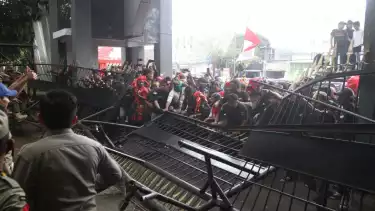 Makassar, tvOnenews.com - Organisasi masyarakat (ormas) yang tergabung dalam Aliansi Suku Makassar berunjuk rasa menolak izin W Super Club milik Hotman Paris di lokasi kawasan CPI berhasil masuk ke pelataran Kantor Gubernur Sulsel, dengan menerobos pagar pembatas dengan merusak yang dijaga Satpol PP, Senin (3/6/2024).
