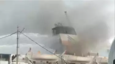 Sebelumnya, beredar di media sosial video yang memperlihatkan kepulan asap membumbung di atas kapal.