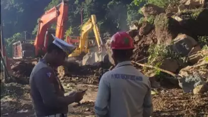 "Saat ini alat berat lainnya sedang melakukan evakuasi terhadap alat berat yang tertimpa material longsor, tidak ada korban jiwa dalam peristiwa tersebut," lanjut Rusdi.