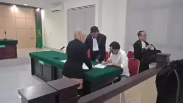 Terdakwa setelah berdiskusi dengan penasehat hukumnya, menerima vonis yang dijatuhkan oleh majelis hakim.