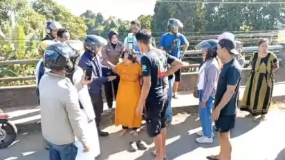 Iptu Suhardi menerangkan, awalnya warga yang melintasi melihat perempuan naik ke atas besi jembatan dan hendak melompat. Ia pun sontak menarik dan mengevakuasinta.
