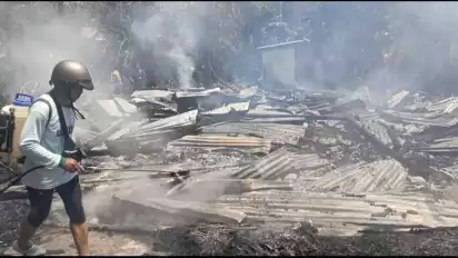 "Saya kemudian langsung naik ke rumah untuk memadamkan api. Kebetulan air cukup banyak dan saya kira saya mampu memadamkan. Namun saat api mulai sedikit, tiba-tiba saja angin bertiup kencang sehingga kembali membesar dan membakar bagian atap rumah yang terbuat dari daun rumbia. Api pun dengan cepat merembes sehingga saya hanya bisa mengamankan beberapa barang saja lalu kemudian turun," jelas Assi saat melihat rumahnya yang rata dengan tanah.