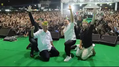 Heboh Kedatangan Raffi Ahmad, di Deklarasi Pasangan Bacagub Sultra Ruksamin dan LM Syafei Dihadiri Ribuan Massa