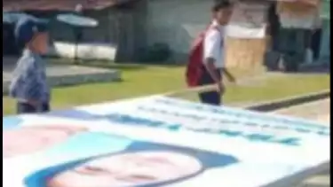 Viral di Medsos Foto Pelajar SMP di Mamuju Hendak Memasang Baliho Cakada