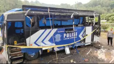 Maros, tvOnenews.com - Mobil SIM keliling Polres Maros, terbakar hebat saat melakukan pelayanan di desa Rompegading, Kecamatan Cenrana, Kabupaten Maros, Sulawesi Selatan, Selasa (24/9/2024). Beruntung warga dan Polisi dapat menyelamatkan diri.
