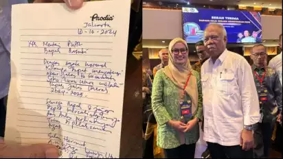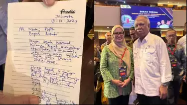 "Saya tulis tangan saat pak menteri Basuki performance main drum. Tujuannya supaya beliau tidak lupa Seko, Luwu Utara," kata Indah Putri Indriani, Jumat (11/10/2024).