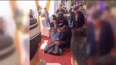 Sebuah video viral memperlihatkan seorang pria terkapar setelah melakukan upacara adat angngaru disebuah acara pengantin di Pangkep, Sulawesi Selatan.