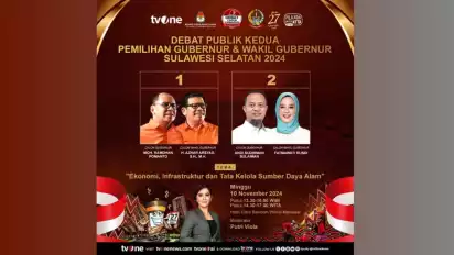 Makassar, tvOnenews.com - Komisi Pemilihan Umum (KPU) Provinsi Sulawesi Selatan bekerja sama dengan tvOne akan menggelar debat publik kedua bagi pasangan calon Gubernur dan Wakil Gubernur Sulawesi Selatan 2024 pada Minggu, 10 November 2024.