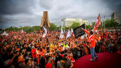 Anjungan MNEK dipenuhi lautan manusia yang mengenakan baju berwarna orange kompak dengan Paslon mereka.