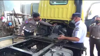 Makassar, Sulawesi Selatan - Direktorat lalu lintas Polda Sulsel bersama Balai Pengelola Transportasi Darat (BPTD) melakukan penindakan kendaraan truk yang Over Dimensi Over loading (ODOL) dengan menindak menindak sebanyak 102 unit kendaraan yang memiliki dimensi dan melebihi kapasitas angkut yang ditemukan di sejumlah bengkel karoseri seperti di karoseri hertasning dan bengkel di toddopuli raya makassar, Kamis (17/2/2022).