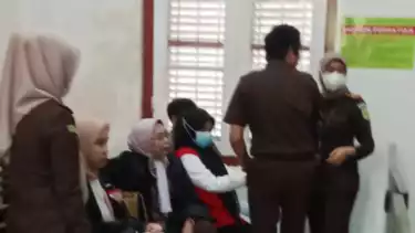 Saat Terdakwa Andi Fatmasari Rahman keluar dari ruang sidang, beberapa anggota keluarga korban terlihat geram dan meneriakinya, terdakwa.