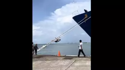 Makassar, tvOnenews.com - Viral video pedagang asongan di Kota Makassar, Sulawesi Selatan, memperlihatkan nekat dan membahayakan dirinya sendiri dengan memanjat tali tambang kapal km ciremai yang sandar di terminal Pelabuhan Soekarno Hatta (Soetta).