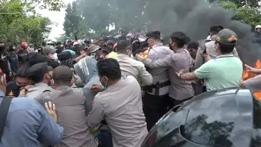 Massa yang tersulut emosi karena dipaksa membuka blokir jalan akhirnya terlibat saling dorong dengan petugas keamanan, bahkan beberapa petani diseret oleh petugas keamanan, sehingga memicu emosi dari massa aksi. Tak hanya itu, aksi adu jotos pun nyaris terjadi saat seorang yang diduga petugas berpakaian preman berusaha menyerang massa aksi, akibatnya para peserta demo semakin tersulut emosi dan mengejar oknum tersebut, sehingga nyaris terjadi aksi saling hantam.