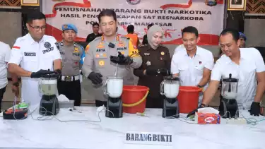 Makassar, tvOnenews.com - Kepolisian Resor Kota Besar (Polrestabes) Makassar kembali memusnahkan barang bukti narkotika jenis sabu seberat 1,4 kilogram, Rabu (26/2/2025).