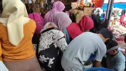 Puluhan warga yang didominasi emak emak ini berebutan untuk bisa mendapatkan minyak goreng curah yang dijual di atas harga subsidi pemerintah."Saya setiap hari kalau ke pasar selalu membawa botol kemasan air mineral ukuran satu setengah liter hanya untuk berjaga jaga jika saja ada minyak goreng yang dijual dan alhamdulillah ternyata ada," ujar Kasma, warga yang ditemui saat ikut berebutan minyak goreng.
