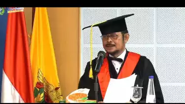 "Kearifan lokal kita sekarang dimodernisasi dengan hukum positif oleh karena itu hukum sekarang tidak boleh meninggalkan hukum-hukum budaya yang telah hidup di tengah masyarakat begitupun dengan hukum kelola tata negara. Itulah pendekatan yang coba saya sampaikan dalam orasi ilmiah," ujar Menteri Pertanian, Syahrul Yasin Limpo. (Wawan Setiawan/Ask)