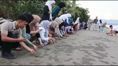 Jaga Kelestarian Penyu, Ratusan Bayi Penyu Dilepasliarkan