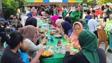 Ratusan warga tampak antusias menikmati sajian dari Warung Makan Gratis