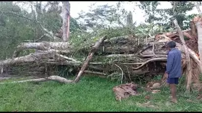 "Pohon ini belum bisa di evakuasi sebelum mendapat ijin dari tokoh adat wilayah setempat sebab pohon beringin yang tumbang dianggap sebagai pohon keramat jadi harus ada ritual dulu dari tokoh adat," terang Margaretha, Warga Tarongko.