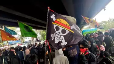 Aksi Respons Pembahasan RKUHP, Mahasiswa Kibarkan Bendera One Piece