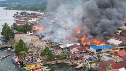 Luwu Timur, tvOnenews.com - Kebakaran hebat melanda kawasan permukiman padat penduduk di Desa Sorowako, Kecamatan Nuha, Kabupaten Luwu Timur, Sulawesi Selatan, pada Rabu (27/08/2025) siang. Api mulai berkobar sekitar pukul 14.00 WITA dan dengan cepat melahap sejumlah rumah semi permanen.
