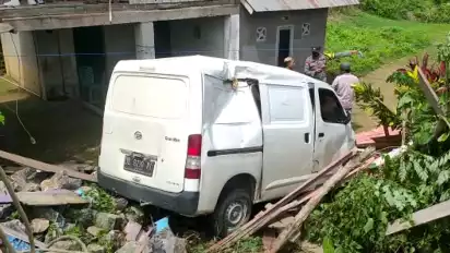 Minibus Seruduk Rumah Warga di Kendari, Pemilik Rumah Loncat Ke Parit