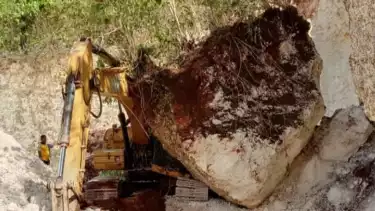 "Tiba-tiba longsor dan batu besar yang beratnya sekitar 1 ton menimpa atap ekskavator itu," bebernya.