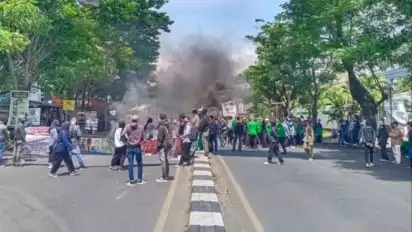 Tolak Kenaikan Harga BBM, Mahasiswa UIN Alauddin Makassar Sandera Mobil Truk dan Menutup Jalan Sultan Alauddin Makassar