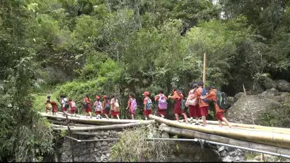 Lintasi Jembatan Bambu Lapuk, Anak-Anak di Tana Toraja Menantang Maut Setiap Hari, Siswa SD: Pak Jokowi Perbaiki Dong
