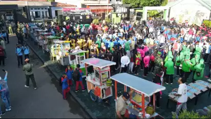 Jalan santai dan makan bakso massal memeriahkan HUT TNI Ke 77 diikuti ribuan peserta dari kalangan ASN, TNI Polri, Pelajar dan organisasi lainnya. (ain/ask)