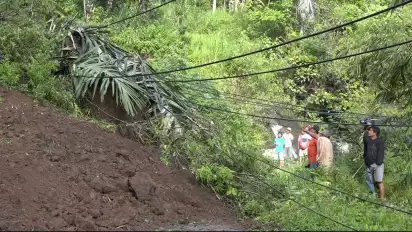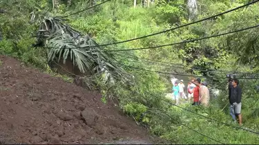"Longsor terjadi tadi malam sekitar jam 9 malam, sampai hari ini masih tertutup karena ada batu besar dan tiang listrik yang mentup badan jalan," terang Agustinus Sangka, Kepala Lembang Sikuku, yang di saat bersamaan memantau kondisi longsor.