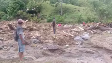 Mamuju, Sulawesi Barat - Tak ada alat berat yang bisa digunakan warga desa terpencil di Kecamatan Kalumpang, Kabupaten Mamuju, Sulawesi Barat (Sulbar), bergotong royong membersihkan material longsor yang menutup jalan penghubung antar desa.