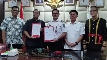 Minahasa Utara, Sulut - Pemerintah Kabupaten Minahasa Utara (Minut), Sulawesi Utara (Sulut) secara resmi menandatangani perjanjian kerja sama atau Memorandum of Understanding (MoU) dengan PT. Lativi Media Karya (tvOne) di Ruang rapat, Kantor Bupati, Minahasa Utara, Rabu (16/11/2022).