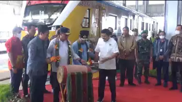 Maros, Sulawesi Selatan - Menteri Perhubungan Budi Karya Sumadi, melakukan soft launching (pengoperasian terbatas) Kereta Api jalur ruas Maros-Pangkep yang menjadi bagian dari proyek pembangunan Kereta Api Makassar-Parepare, Jumat (2/12/2022).