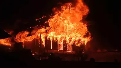 Kebakaran Hebat Landa Dua Unit Rumah Panggung di Kawasan Rumah Adat Benteng Sombaopu Gowa Sulawesi Selatan