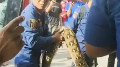 “6 personel kami terjunkan, Alhamdulillah kami bisa evakuasi dengan lancar. Ular sanca itu sepanjang 5 meter,” jelas Yamin.