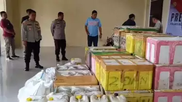 "Ribuan liter minuman keras yang berhasil disita aparat kepolisian dilakukan melalui operasi dan mendapati adanya minuman keras yang dikemas di dalam kantong plastik dan kemudian disimpan di dalam stereofoam ikan, bahkan ada beberapa liter minuman keras lainnya juga disimpan di dalam karung beras dengan tujuan bisa luput dari pemeriksaan polisi," ujar Kapolres AKBP Slamet Ramelan.