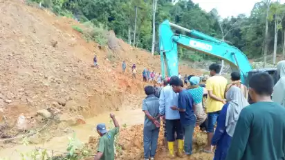 Nagan Raya, Aceh - Diduga tertimbun longsor di lokasi tambang emas ilegal, jasad Said Bukhari, Kepala Desa Gunong Nagan, Kecamatan Beutong sampai saat ini belum ditemukan di lokasi kejadian.