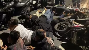 Binjai, Sumatera Utara - Diduga anggota kelompok geng motor, 22 remaja yang masih di bawah umur diamankan personel gabungan Polres Binjai dan Polsek sejajaran di Jalan Gatot Subroto, Kelurahan Suka Maju, Kecamatan Binjai Barat, Kota Binjai, Minggu (12/2/2023) sekitar pukul 02.30 dini hari.