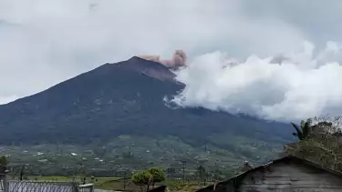 Kerinci, Jambi - Aktivitas Gunung api Kerinci kembali meningkat dan mengalami erupsi pada Rabu (15/02/2023). Pukul 12.07 WIB dengan tinggi kolom abu teramati ± 200m di atas puncak (± 4.005 m di atas permukaan laut). Dengan kolom abu teramati berwarna coklat dengan intensitas tebal condong ke arah timur laut dan timur.