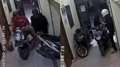 "Saya dengar di bawah ini ada suara yang sedang menggeser motor, kayak (seperti) mukul. Jadi saya berinisiatif bangun tapi enggak berani turun ke bawah. Saya lihat dari lantai dua ada pencuri terus saya teriak mereka langsung kabur," kata Yudi, salah satu penghuni indekos yang melihat kejadian itu.