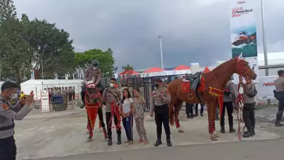 Pantauan di lapangan, kehadiran polisi berkuda yang disiapkan Polda Sumut menjadi perhatian masyarakat serta penonton F1 Powerboat.