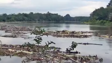 Pali, tvOnenews.com - Tumpukan sampah seperti, pohon pisang, ranting kayu, dan sampah rumah tangga tampak mengalir di Sungai Lematang sejak Jumat (10/3/2023) siang hingga Sabtu (11/3/2023) pagi, di Kecamatan Tanah Abang, Kabupaten Pali, Sumsel. Camat setempat sebut ada sebanyak 10 desa yang sering terjadi banjir.