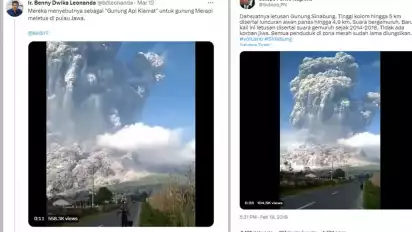 Sementara, untuk membuktikan bahwa gunung meletus yang dimaksud Benni Dwika, seorang netizen pemilik akun @_keongbalap merepost postingan dari Kepala Humas BNPB tahun 2018 yang lalu, Sutopo Purwo Nugroho.