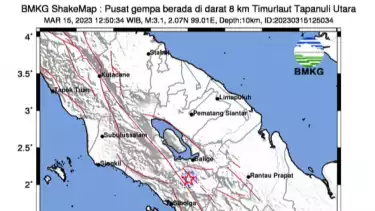 Taput, tvOnenews.com – Kota Tarutung, Kabupaten Tapanuli Utara (Taput), Sumatera Utara (Sumut) diguncang gempa berkekuatan Magnitudo (M) 3.1, Rabu (15/3/2023).