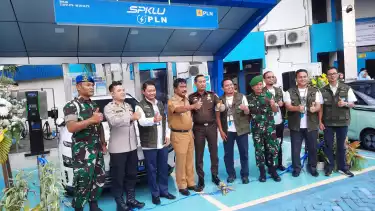 Binjai, tvOnenews.com - PLN Unit Pelaksana Pelayanan Pelanggan (UP3) Kota Binjai, meresmikan Stasiun Pengisian Kendaraan Listrik Umum (SPKLU) yang terletak di halaman PLN UP3, Senin (20/3/2023).