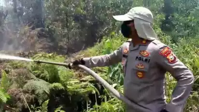 Bengkalis, tvOnenews.com - Kapolres Bengkalis AKBP Setyo Bimo Anggoro rela menempuh medan yang berat untuk sampai ke lokasi kebakaran hutan dan lahan terjadi di Kabupaten Bengkalis yang berlangsung sejak beberapa hari tersebut.